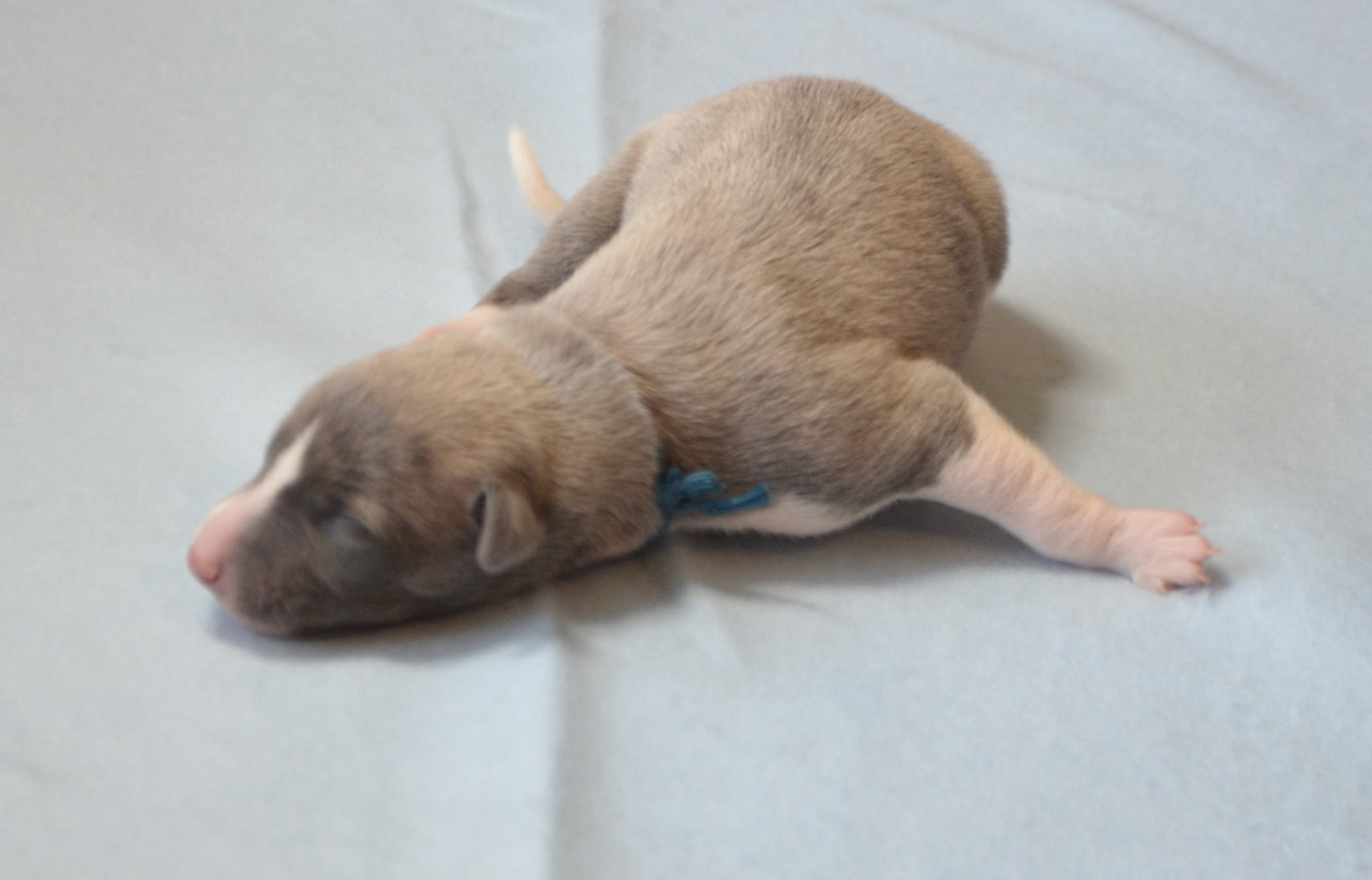 psík sa narodil ako siedme šteniatko s váhou 333 g. na svet sa mu moc nechcelo, v brušku mal asi najviac miesta a to sa snaži ukázat aj teraz. ja najväčší a papať mu chutí stále :-D Farebne sa tiež podal na maminku, akurát mu chýba biely golierik.